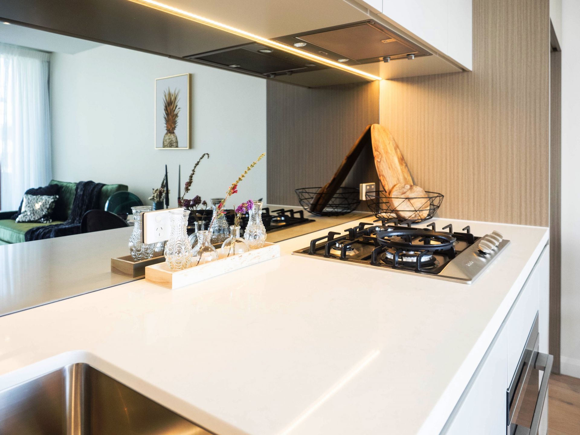 - Quality gas kitchen with cesar stone benchtop & Miele appliances and pantry