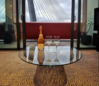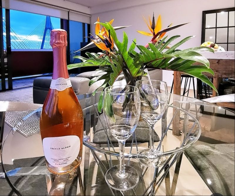 Enjoy a seamless indoor-outdoor lifestyle with floor-to-ceiling glass doors opening onto a massive entertainer's terrace complete with a barbecue, dining area, and panoramic water and bridge views - ideal for unwinding or entertaining guests.