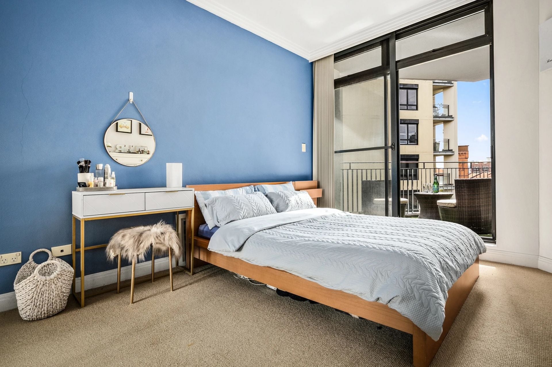 - Generously sized bedroom with built-in wardrobe and access to a private balcony, separate from the living room balcony