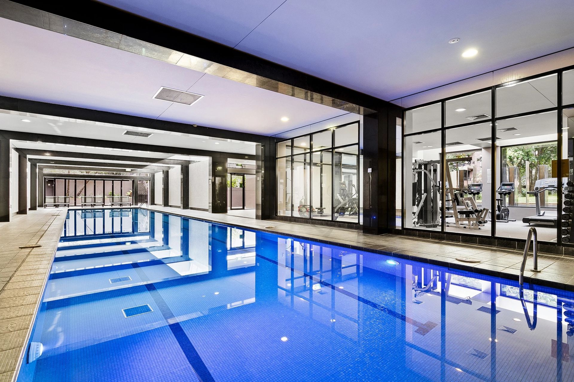 Access to resort-style amenities including an indoor swimming pool, spa, sauna, and two fully-equipped gyms