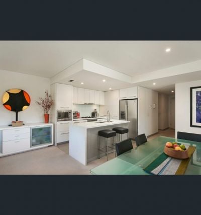 - Gourmet open plan kitchen featuring Caesarstone benchtop and premium, state-of-the-art appliances