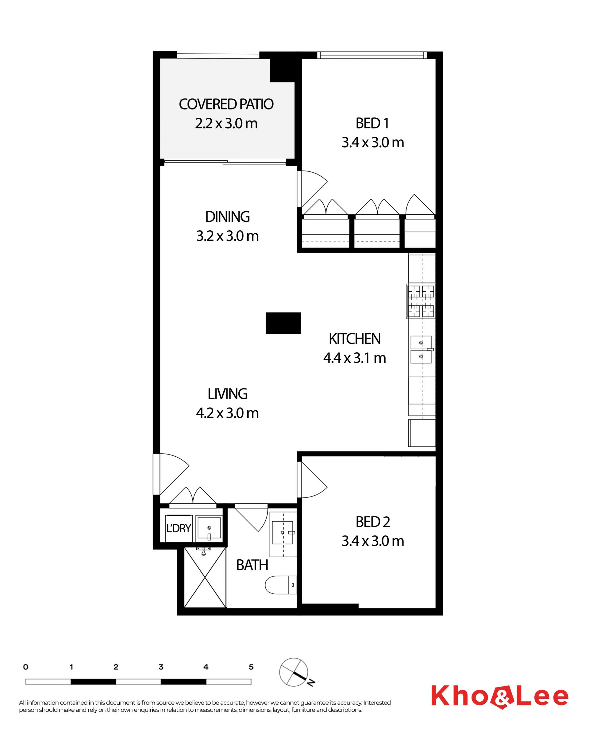 - Timber flooring throughout living, dining and second bedroom