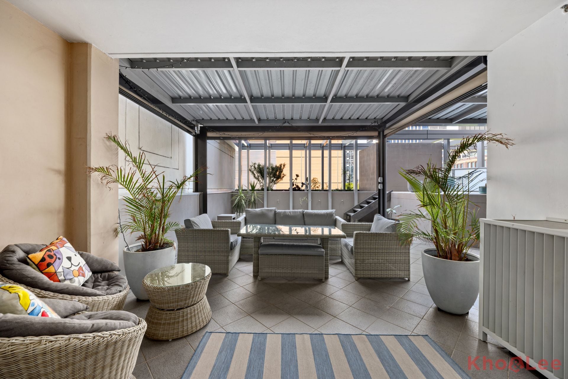 - Expansive private terrace with covered entertaining area
